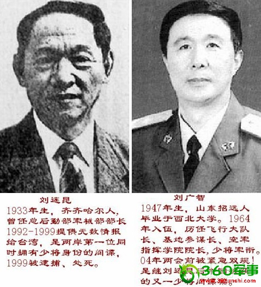另据透露,与刘广智共同涉入台谍案的军官,除了空军指挥学院的一位处长王某,还有解放军高等学府的军官。他们同样是由贾某发展的。而时任空军装备部军官的刘广智的儿子,也因涉案被捕。