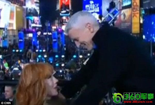 据台媒报道,昨日美国CNN电视台进行跨年之夜特别节目,让当家男主播古柏(AndersonCooper)和喜剧女演员葛林芬(KathyGriffin)担任主持人,2人联手在纽约时代广场进行跨年晚会的连线转播,但在节目中间时,葛林芬突然往下蹲,亲了古柏的下体,让古柏相当尴尬,不少观众被吓到,直言“尺度太大”。