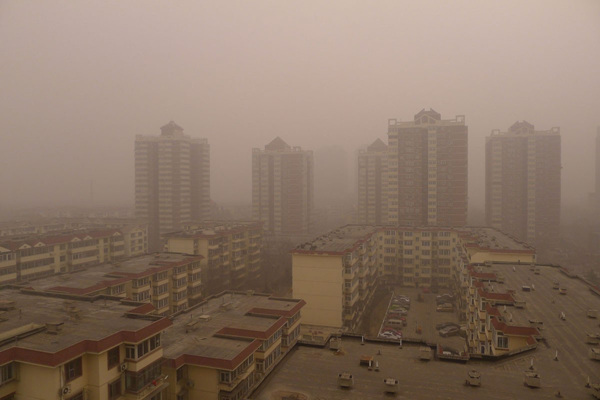 2月28日,北京五道口清华东门附近,沙尘来袭。