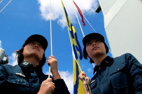 海军“井冈山”舰首批女舰员出海训练(1)(2)