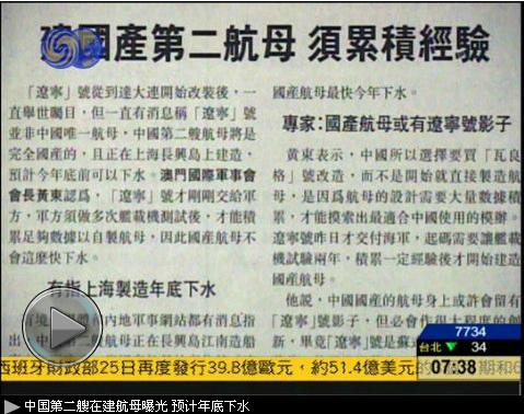 凤凰卫视9月26日《凤凰早班车》节目播出“中国第二艘在建曝光预计年底下水”,以下为文字实录:     杨舒:中国第一艘航母才刚刚交付海军使用,而各界已经高度期待中国第二艘航空母舰了。     《明报》的报道说,中国第二艘完全国产的航母正在上海长兴岛上建造,预计今年年底就可以下水。     有澳门的军事专家说中国国产的航母身上可能会留有辽宁号的影子,但必定会做出很大程度的创新。     因为毕竟辽宁号是苏联式设计,设计理念是有点落后使用常规动力,这跟中国心目中理想的美式核动力航母差距较大。