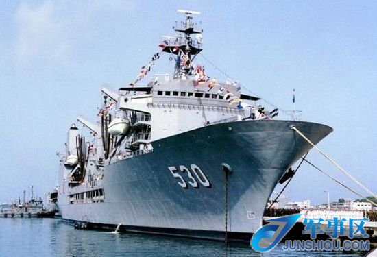 “武夷”号排水量高达1.7万吨,是台海军吨位最大的战舰,也是仅有的一艘油弹补给舰。报道称,它的甲板有四组大型吊架可吊放油管,两组吊架吊放物资;舰尾还有可操作大型直升机的飞行甲板与机库,足以起降如CH-47等级的大型直升机,也可在海上完成燃油及武器弹药的补给任务。
