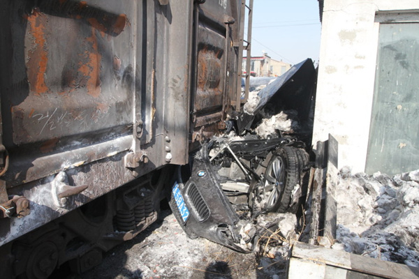 哈尔滨 宝马撞火车!(1)(4)