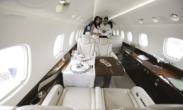 成龙私人飞机莱格赛650公务机被打造得舒适休闲,最多可载14人。