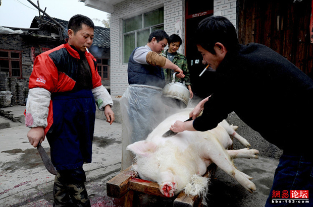 各种农村杀猪场面 看得心惊肉跳(1)(5)