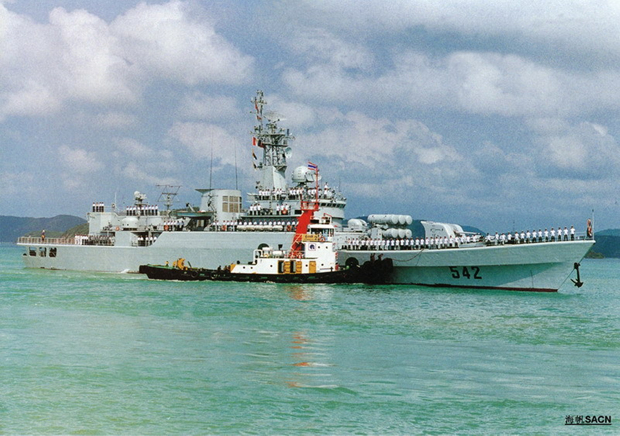 我军铜陵号舰猛射火箭深弹攻击“潜艇”(1)(4)