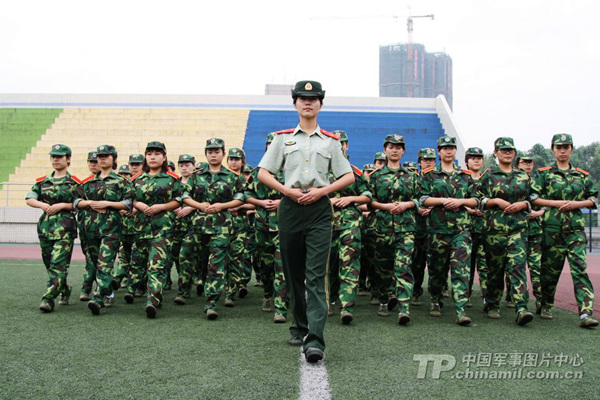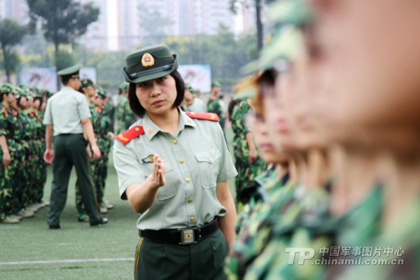 成都大学新生军训漂亮女兵当教官(1)(2)