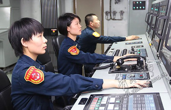 辽宁号航母上的机电监控台。