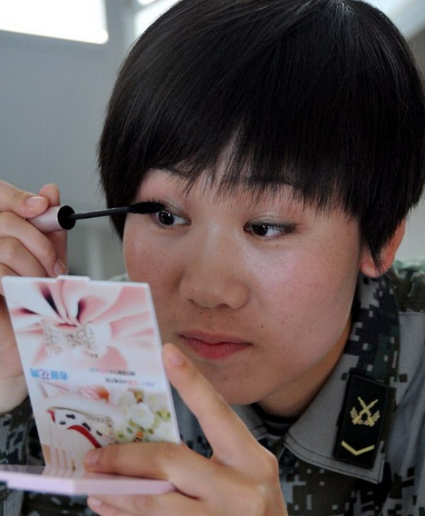 2011年7月,34名女兵混杂在上百节车厢组成的铁路长龙里来到了大西北。戈壁的风沙将这些原本面庞俏丽的女兵雕琢得辨认不出原来的模样。站在男兵的队伍里,一样黝黑,一样清瘦,只有两鬓偶尔露出的长发表明了她们的性别特征。